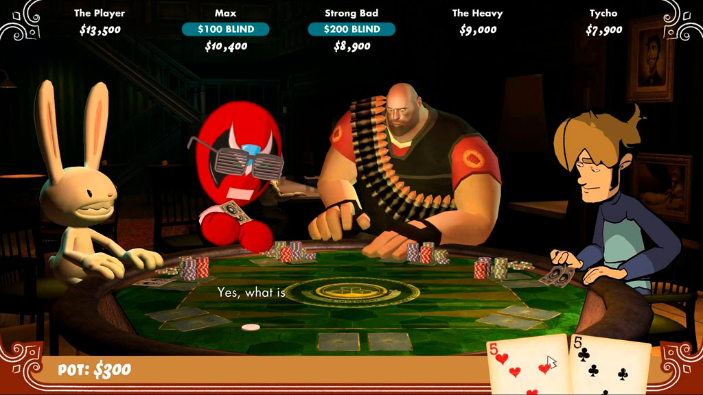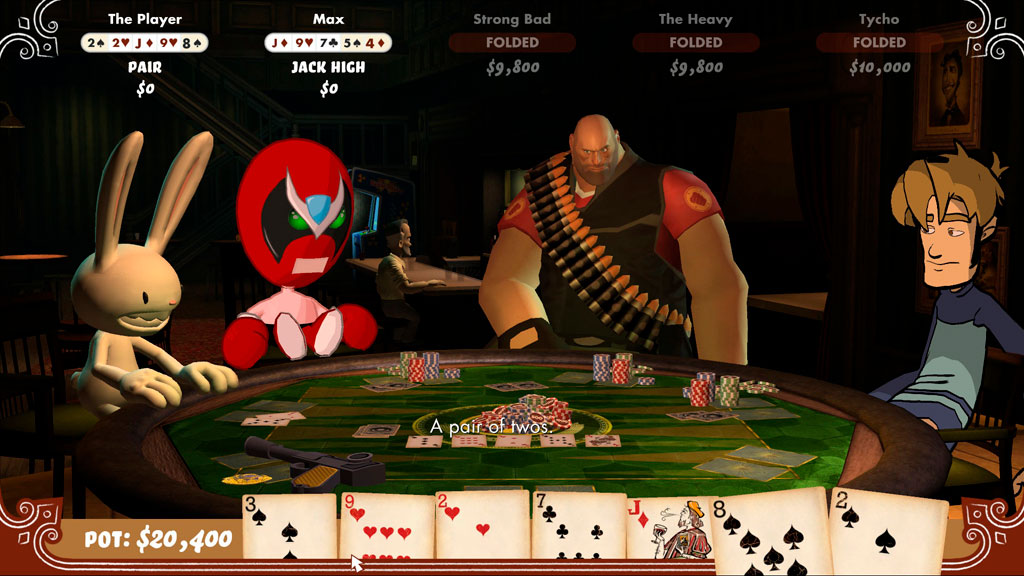 Отличный виртуальный покер, где в качестве оппонентов выступают персонажи различных популярных компьютерных игр. Любители данной карточной игры смогут сразиться с такими противниками, как Пулеметчик из Team Fortress, главный герой из Penny Arcade, гиперактивный кролик из Sam & Max и другие.