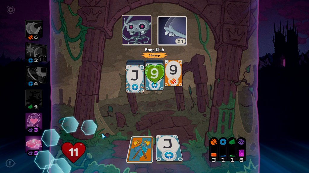 Общие правила здесь выглядят следующим образом: в распоряжении игрока находится три карты, на использование которых тратятся очки маны. В игре несколько персонажей, которые прокачиваются со временем (это увеличивает, например, их очки жизни). Карты черных мастей добавляют броню, красных – атакуют. Каждый раунд начинается с фазы маны.