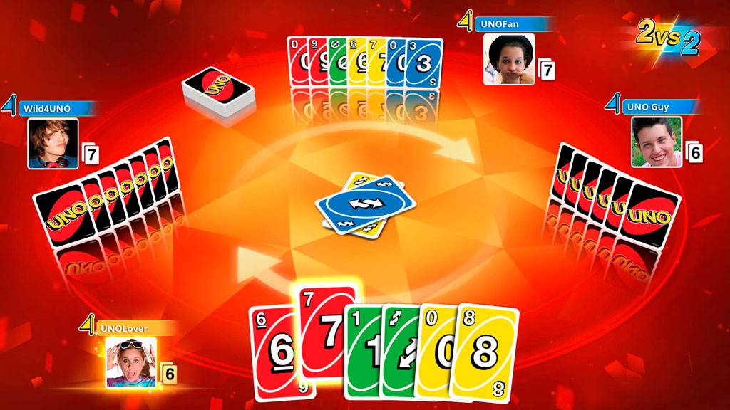 Правила здесь предельно просты. Главная задача каждого игрока – избавиться от всех карт в своей руке. Ходить можно только карточками одного цвета, либо одного типа. В колоде есть карты-действия, заставляющие игрока пропустить ход или, например, развернуть движение игры в противоположную сторону. В момент избавления от предпоследней карты нужно громко сказать UNO, сообщая остальным игрокам, что у вас осталась всего одна карта.