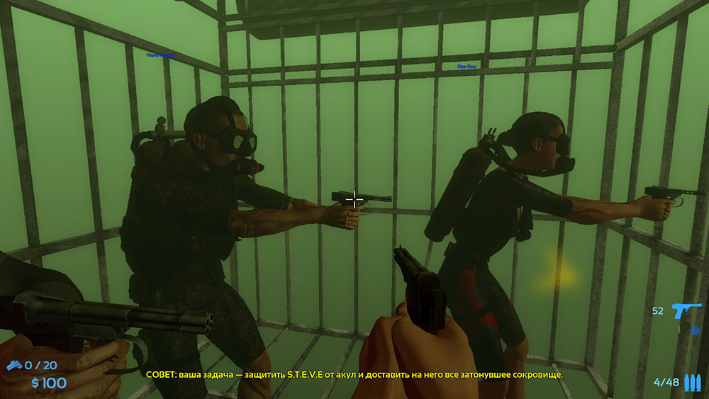 В одном раунде может быть до четырех ныряльщиков и двух акул. В арсенале аквалангистов всевозможные мины, гранаты, подводные пистолеты, нож, гарпуны, системы слежения, турели и пр. Казалось бы, что при таком арсенале акулы находятся в заведомо проигрышной ситуации. Но как бы ни так! Разработчики игры хорошо поработали над балансом сторон, поэтому каждый бой между людьми и хищником будет уникальным и непредсказуемым.