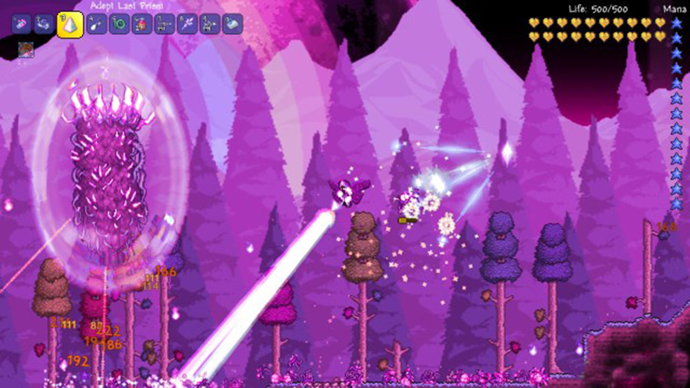 Террария атмосферная игра, с большим увлекательным миром, сделанным в стиле “Марио”, и с тематикой выживания (как в Minecraft). Но в отличии от Minecraft, тут есть множество боссов, ночью гораздо страшнее, а на хардкорной сложности вообще нужно опасаться даже обычного песка. В игре так же очень много оружия от деревянной кирки до пулемёта, от пулемёта до магического зачарованного злыми чарами меча! Множество скинов, шмота. Множество питомцев, от обычных свинок до драконов! Разнообразные виды врагов, прокачка персонажа и его характеристик!