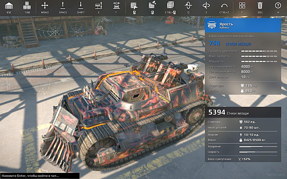 Части и материалы для своих машин игроки могут получать, как в боях, так и приобретая за внутриигровую валюту у других игроков. Техника создается из нескольких деталей, являющихся основными (это кабина, платформа, колеса или гусеницы, а также турбины). Кроме того на свой боевой транспорт можно «нацепить» неосновные, но крайне полезные детали, усиливающие вооружение, броню и пр. Примечательно, что проект старается отойти от шаблонности, и здесь вполне реально создать абсолютно уникальный транспорт, «заточенный» под собственный стиль игры.