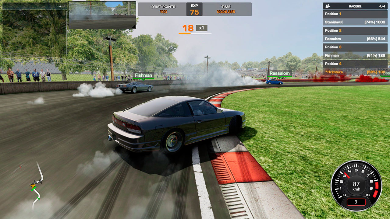 Аркадный гоночный симулятор, посвященный дрифтингу. В игре множество легендарных автомобилей, детальный внутренний и внешний тюнинг авто и мультиплеер с лимитом в 16 человек на комнату. Кроме того здесь имеется 11 отлично спроектированных под дрифт трасс, неплохая физика поведения машины в заносе, есть поддержка геймпадов и рулей.