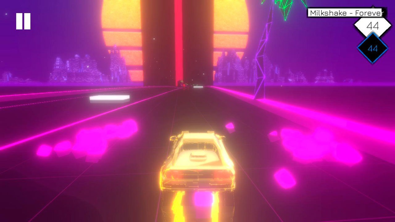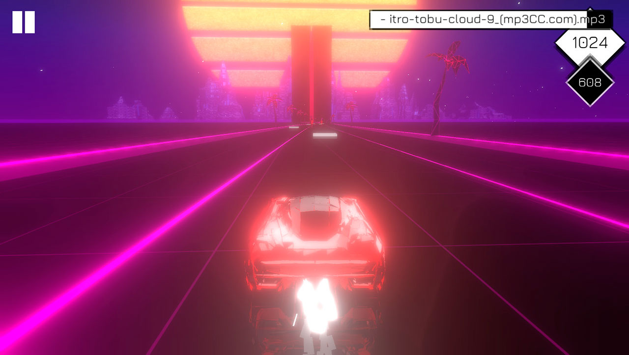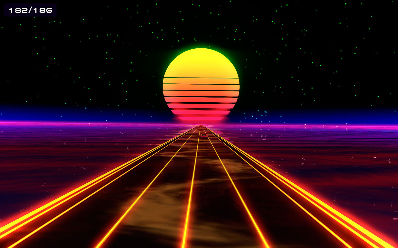 Гоночная аркада в стиле ретровейв с оригинальным игровым процессом, в котором уровни генерируются случайным образом на основе музыки игрока! По мере прохождения уровней игрок будет получать очки, которые можно будет потратить на открытие новых автомобилей. Перед началом заезда игрок может выбрать окружение уровня.