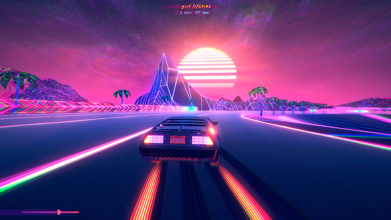 Неоновый гоночный раннер в духе 80-х, по сюжету которого девушку главного героя смертельно ранят «плохие парни» и чтобы продлить ей жизнь, герой подключает сердце девушки к двигателю своего автомобиля DeLorian. Теперь чтобы девушка жила нужно постоянно ехать вперед, не останавливаясь. Остановка означает смерть подруги.