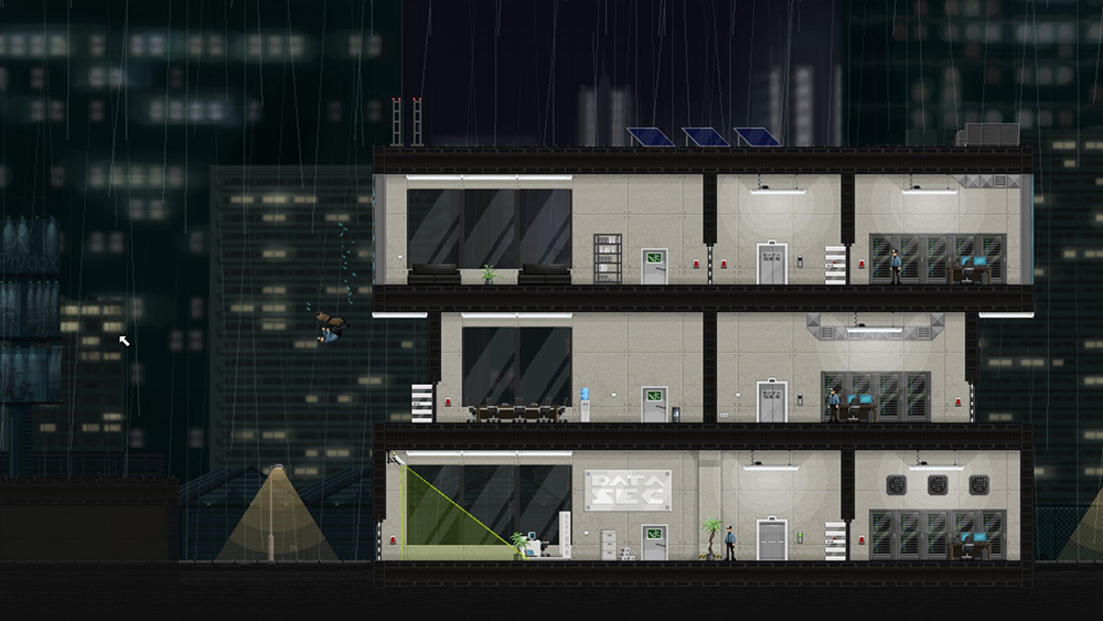 Игровой процесс разворачивается в двухмерной плоскости, при этом все здания показаны как бы в разрезе (нужный нам объект и всю охрану видно сразу). Наш персонаж может прыгать на большие расстояния, ползать по потолку и стенам, а также удаленно проникать в электронные схемы различных узлов здания, перенастраивая их. Между миссиями можно прокачивать технические «примочки» героя.