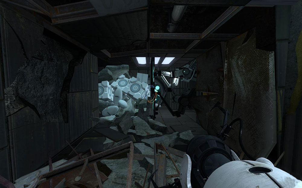Оригинальная головоломка от первого лица, построенная на взаимодействии игрока с порталами. У нашей героини имеется специальная портальная пушка, позволяющая практически на любых плоских поверхностях создавать два портала. Эти порталы позволяют нам перемещаться в труднодоступные места, ускорять прыжки, взаимодействовать с некоторыми предметами и т.п.