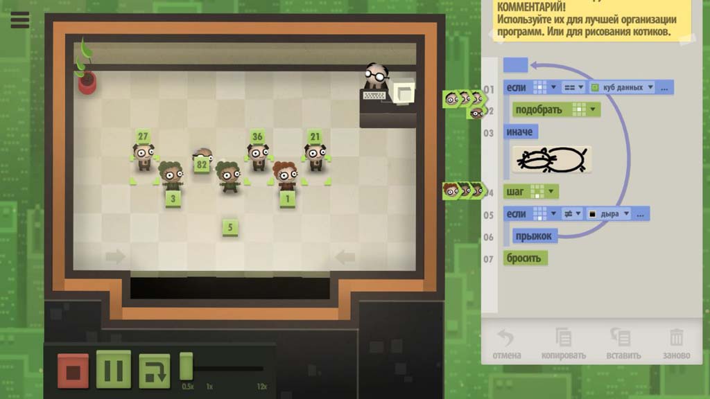 Несмотря на то, что все задачки в игре построены на программировании, даже далекий от программирования человек может в нее играть благодаря отличному обучению непосредственно в процессе прохождения. Для еще большего облегчения прохождения здесь предусмотрены подсказки, и даже пропуски особо сложных уровней.