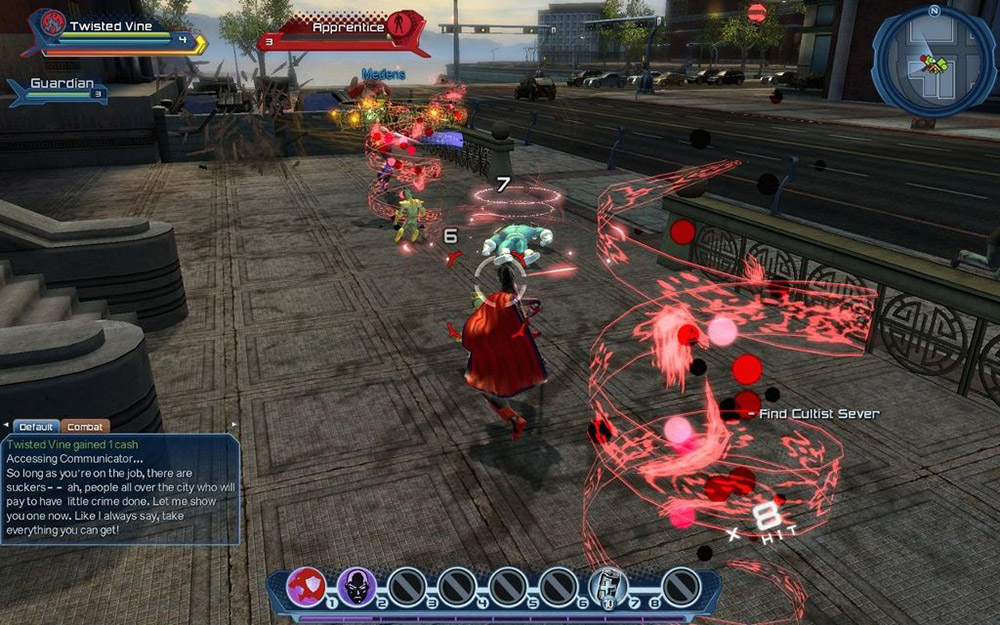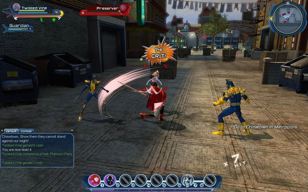Поскольку игра про супергероев, то и экшена здесь на порядок больше, чем в других ММОРПГ. Разработчики умудрились на трех клавишах реализовать глубокую боевую систему с комбо-ударами. Кроме того, под каждую разновидность суперсилы (аналог деления на классы в других играх) существует множество вариантов приемов, заклинаний и финтов, однако на бой можно взять всего 8. Это значительно разнообразит данный проект, поскольку каждый игрок собирает билд под свой стиль игры.