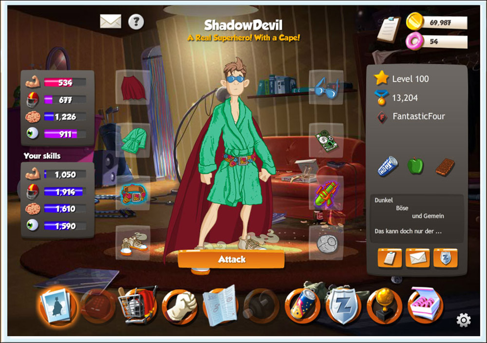 Браузерная РПГ про супергероев. Начать игру предельно просто – регистрируемся, создаем максимально уникального персонажа и в путь, на поиски приключений. Игра несет в себе внушительную толику юмора, даже стилистика рисовки напоминает нам скорее карикатуру, чем серьезный супергеройский проект. У персонажей имеется ряд прокачиваемых характеристик, скиллы, а также инвентарь. Бои проходят в автоматическом режиме. Занятий в игре много, можно например, выполнять квесты, а можно устроиться на работу и поднакопить деньжат.