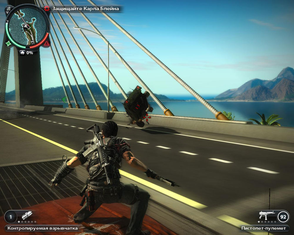 Just Cause 2 динамический шутер от третьего лица и большая площадка для получения удовольствия от головокружительных трюков, постоянных взрывов. Карта игры представляет архипелаг из множества островов разных размеров. 5 разных климатических зон это пески, заснеженные горы, джунгли и всё это игрок может исследовать.