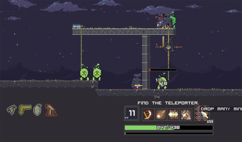 Данный проект является чистокровным рогаликом с примесью платформера. Играем мы за одного из доступных астронавтов, который оказался на чужой – весьма враждебной планете, с которой и необходимо выбраться. Уровни, враги и бонусы генерируются случайным образом, а начинаем мы одним классом – Коммандо, который является классическим бойцом с винтовкой наперевес. Другие классы открываются за выполнение различных условий.