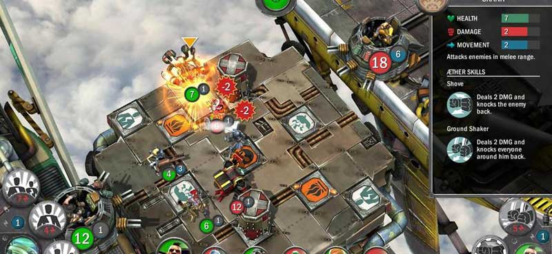 Цель матча заключается в том, чтобы уничтожить вражеский воздушный корабль, припаркованный на противоположном краю карты. С боевой системой разработчики тоже не стали сильно заморачиваться. Здесь нет никаких очков действия или других вещей, которые могли бы хоть как-то усложнить процесс. За ход вы можете совершить два действия. Скажем, дважды передвинуть активного в данный момент персонажа по карте или подвести его к врагу и провести атаку.