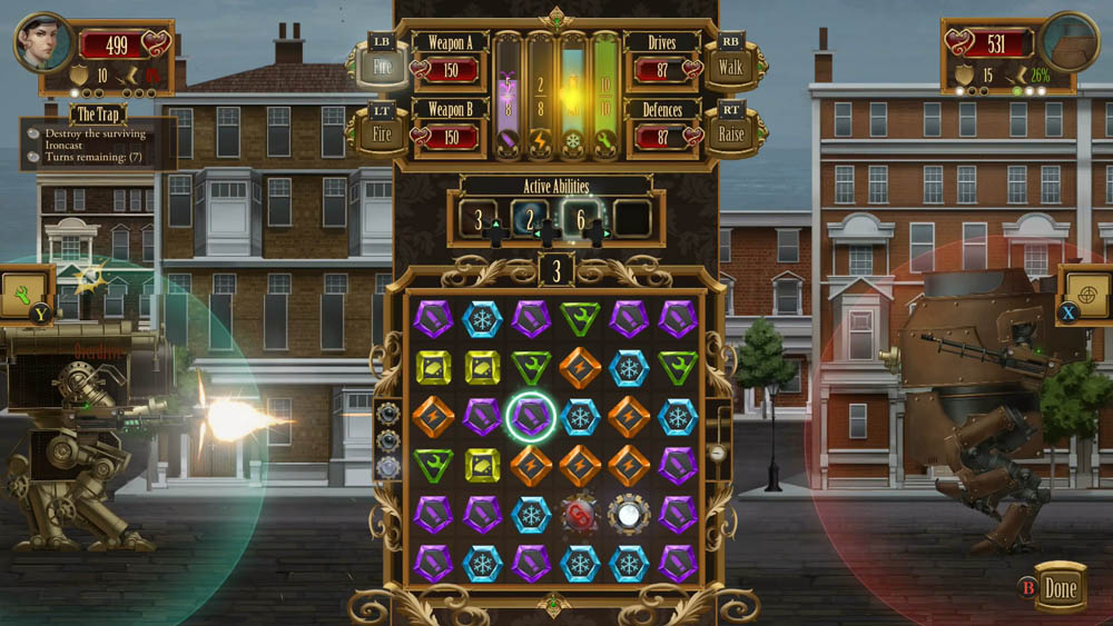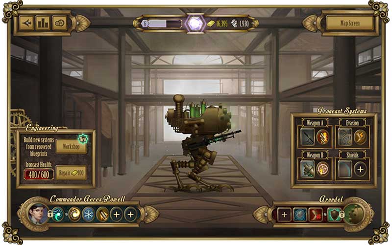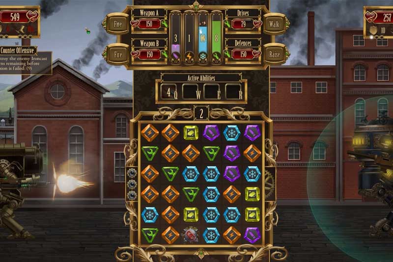 Игра представляет собой пазл-квест. Выбираем миссию на карте, и начинается бой. Слева находится ваш ironcast, справа — вражеский. А посередине — экран с разноцветными камешками и рунами, которые нужно складывать в ряд. Одни камешки, накапливаясь, позволяют вести огонь, другие нужны, чтобы использовать специальные способности вашего «айронкаста», и так далее. Как правило, цель — сточить счетчик здоровья оппонента до нуля. Хотя бывают и другие варианты — продержаться энное число ходов, собрать специальные камни-ресурсы (по сюжету, это какой-нибудь важный груз) или победить врага так, чтобы не повредить его оружие.