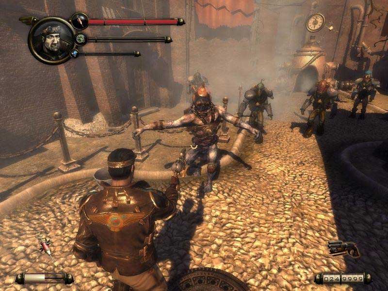 Проклятье – шутер от первого лица с хорошей атмосферой стимпанка и вестерна: Паровые роботы, замысловатые механические изобретения, интересный дизайн оружия и декораций, огромные уровни. Сюжет разворачивается в альтернативной реальности. По замыслу авторов гражданская война в США не закончилась, как ей и было положено, а продолжалась еще несколько десятков лет. Пока обе конфликтующие стороны увлеченно выбивали друг из друга пыль, на сцене появилась зловещая корпорация Prescott Steam Industries бойкие дяди наделали паровых роботов, изобрели пулеметы и ракетницы и решили уничтожить южан вместе с северянами.