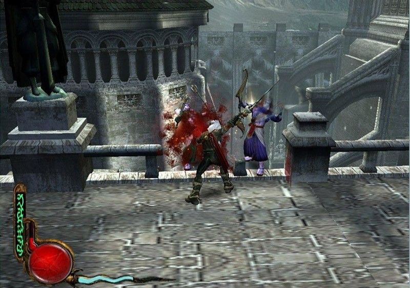 Геймплей составляет уничтожение множества противников посредством различных приёмов с использованием острых лезвий, гарпуна и особых дампирских пистолетов. Также для истребления противников можно использовать окружающие предметы: например, бросать врагов на острые шипы. Активно используется акробатика. Рейн может съезжать по перилам, попутно нарезая противников своими двойными клинками, лазить по трубам, перепрыгивать с одной решётки на другую, раскачиваться на перекладинах и даже стрелять с них, повиснув вниз головой, и т. п. В игре реализовано расчленение тел (отрубаются конечности полностью и частично), множество жестоких добиваний врагов. Трупы со временем исчезают, а кровь остаётся.