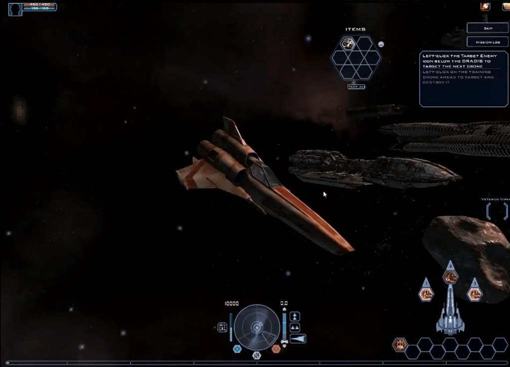 В пилотирование вам дают космический корабль, и тут всё начинается! Можно мочить ботов летающих в космосе, можно сражаться между собой, выполнять квесты и задания. Объединяться в союзы и кланы. Участвовать в массовых сражениях. Громить врагов по всему космосу, ну и самому иногда получать люлей, когда противник превосходит тебя и по количеству и по силе.