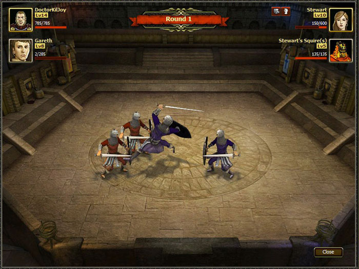 Со временем можно приобретать ещё героев. Сражения войск происходят в автоматическом режиме. То есть вы сначала выставляете перед сражением свои войска, в таком боевом порядке который считаете лучшим. К примеру рыцарей в тяжёлых доспехах выставляете впереди, лучников позади, а конницу с флангов. После того как всё готово запускаете бой. Тот кто имеет сильнее и больше войск, а также выставил правильный боевой порядок тот и побеждает.