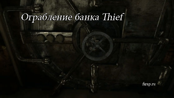 Направляемся ко входу в банк. Оказываемся в небольшом тупике, по решётке перепрыгиваем на другую сторону слева видим центральный вход в банк, который охраняют. Можно прокрасться через стражников и камеры к главному входу и вскрыть замок