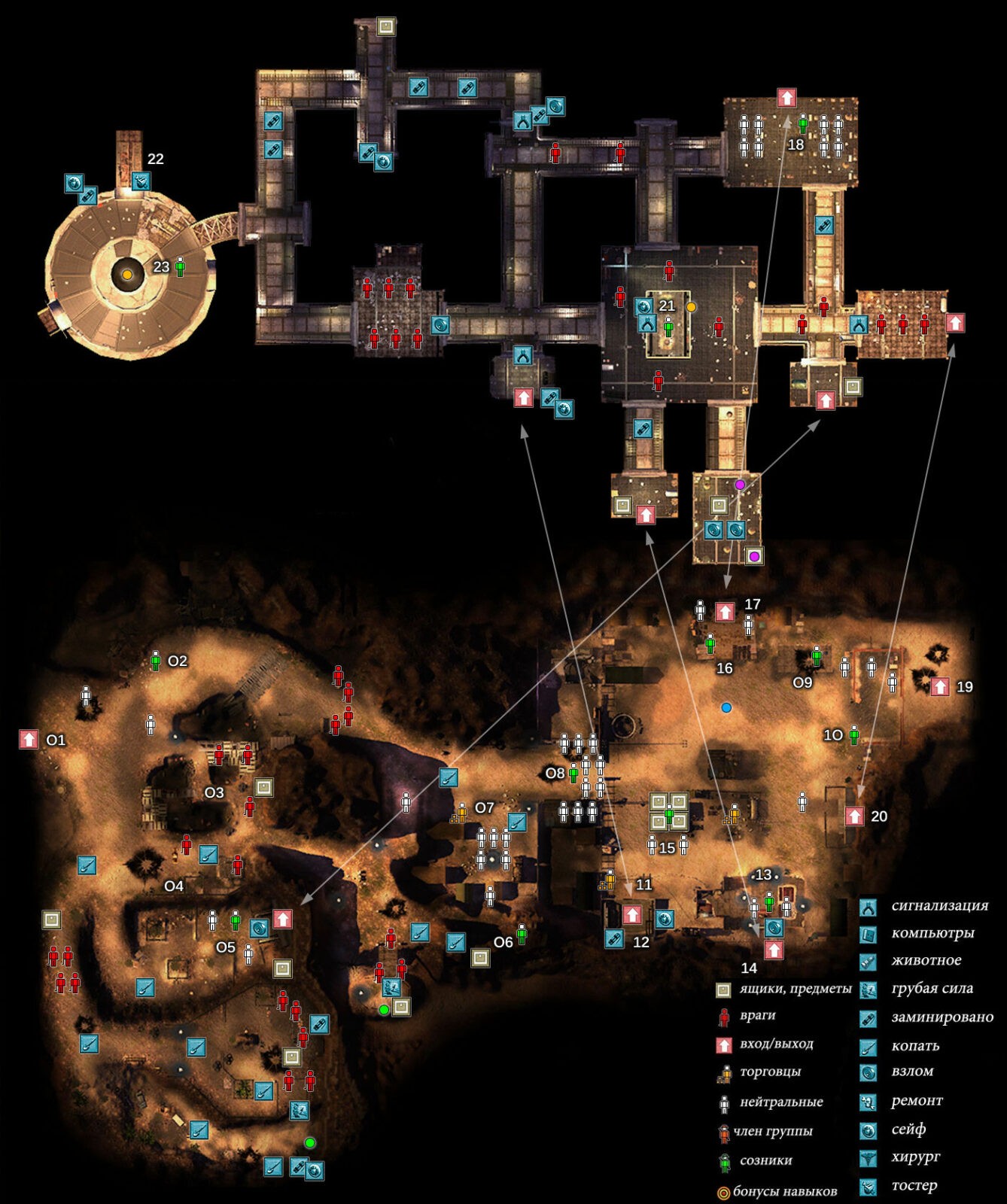 Спасибо за столь основательную работу. Карта очень помогла. Есть несколько уточнений – на карте Каньона Титана правее точки 19 у тебя указаны шесть врагов. Так вот, если в группе будет брат Шапиро, они не станут нападать, есть смысл указать их белым цветом, как и других NPC на точке 19.