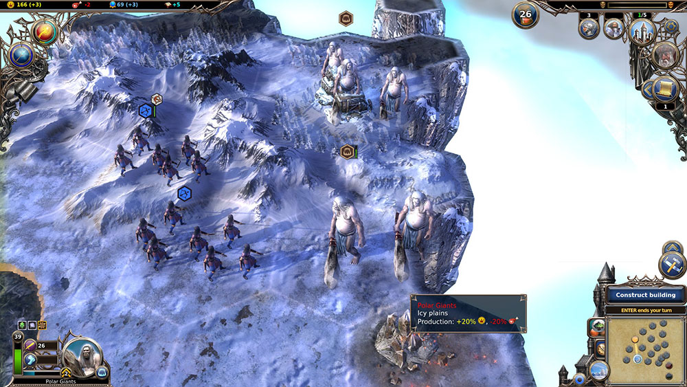 Стандартная стратегическая составляющая, разбавлена хорошим балансом и большим выбором юнитов для каждой фракции. Из нововведений, в игре появились прокачиваемые герои и дополнительные малые расы, поселения которых, находятся на игровой карте. При их захвате, игрок сможет получить уникальный тип войск, героя либо прибавку к ценным ресурсам.