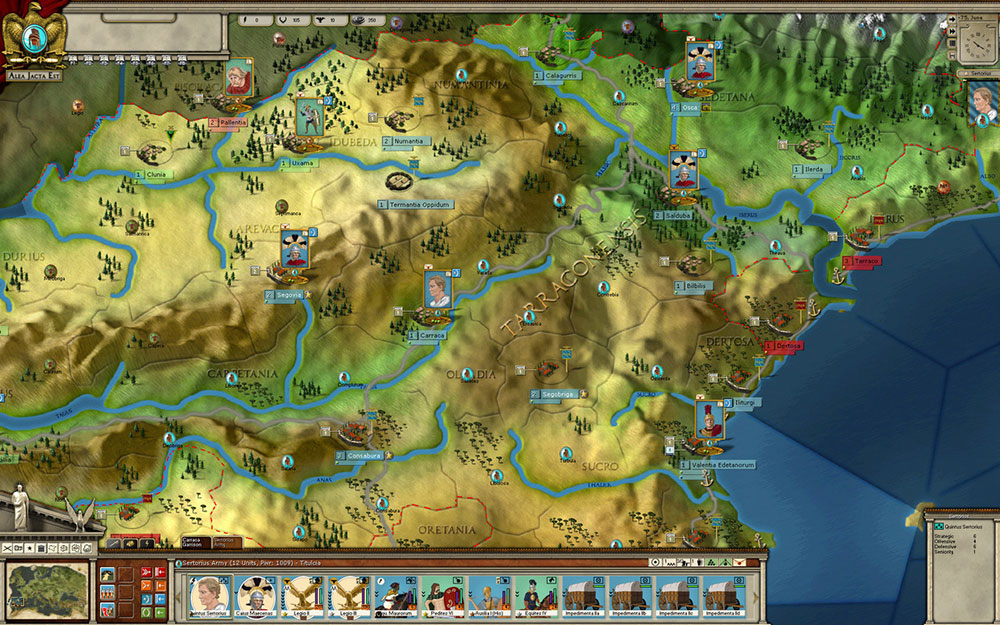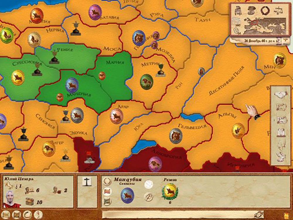Игра выполнена в виде пошаговой стратегии, которая более всего напоминает классическую настолку. В игре реализована масштабная глобальная карта, охватывающая территорию всех римских земель и провинций. Игрок сможет создать свою армию и попытаться повлиять на ход истории, свергая императоров, заключая союзы с германскими племенами, открывая новые фронты и захватывая все большие территории. Проект сможет понравится всем любителям глобальных стратегий про Древний Рим, а также фанатам таких игр как Total War.