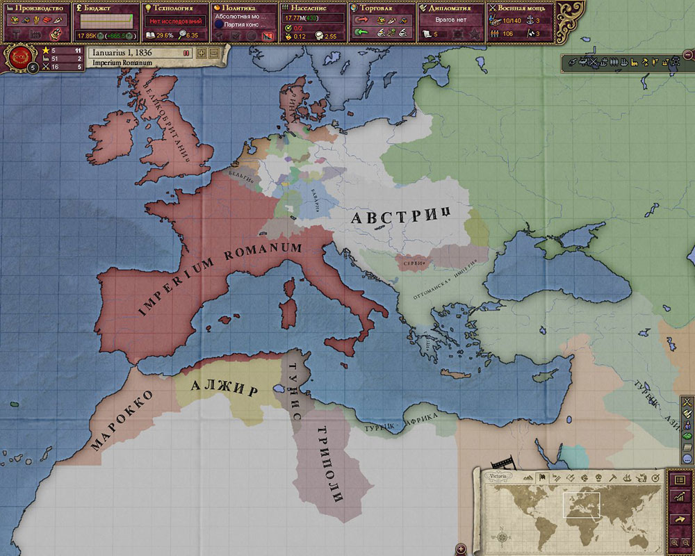 Проект находится во временных рамках от 1836 до 1936 года. Игрок становится лидером одного из 271 государств, которые реально существовали в те времена. Основная задача игры – создать самую масштабную империю в мире, подавить все конкурирующие страны и победить в Перовой мировой войне.