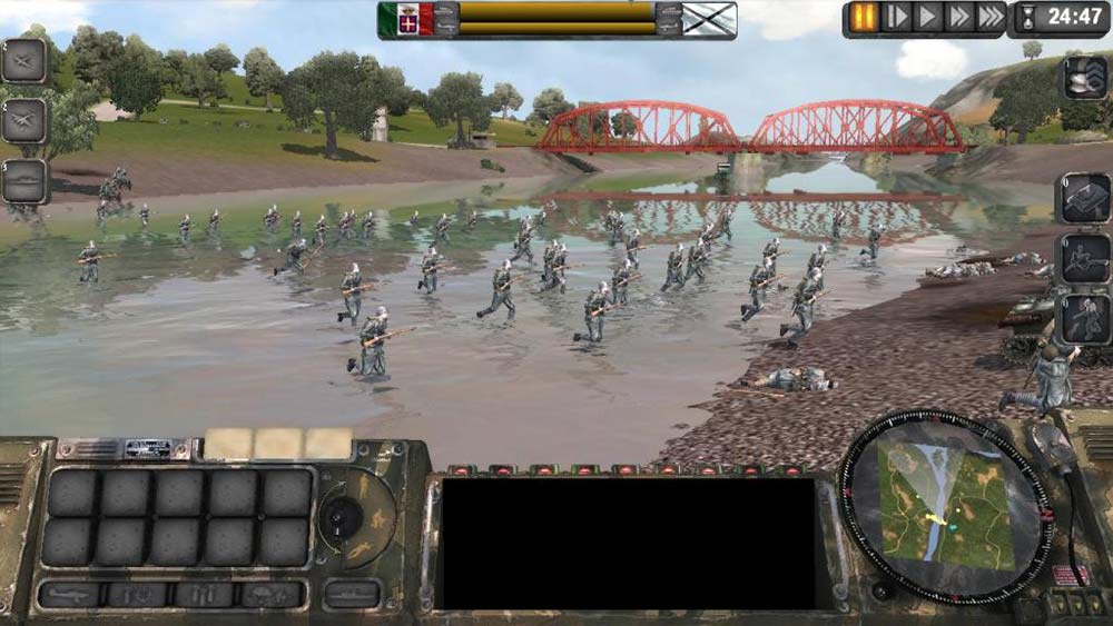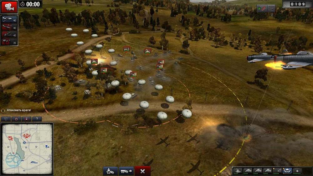 Помогите, пожалуйста! Ищу стратегию о Второй мировой войне. В ней было несколько сюжетных линий за разные стороны конфликта. Был свободный игровой режим вроде арены, где создаёшь игру и воюешь против ИИ. Сам строил свою базу, нужно было занимать золотые прииски или что-то ещё, чтобы добывать деньги и строить хранилища, чтобы их хранить. Строились различные противотанковые сооружения и бункеры, флаки. Была возможность совершать авиаудар, ракетный удар, послать разведывательный самолёт. У всех юнитов в игре были показатели, как они справляются с юнитами других классов. Танки, например, были лёгкими, средними, тяжёлыми и супер-тяжёлыми.