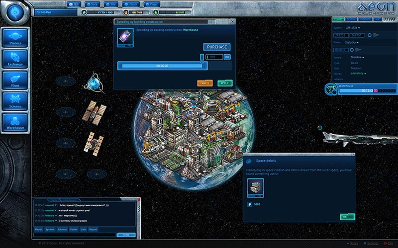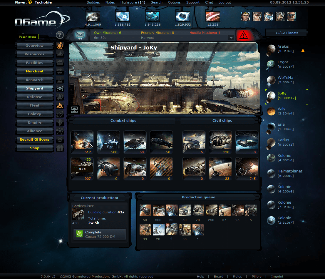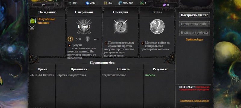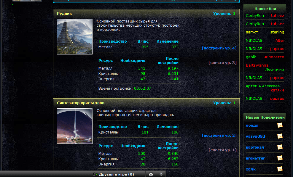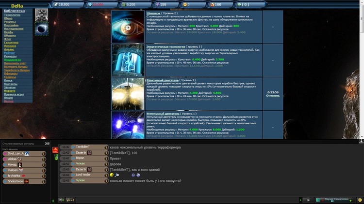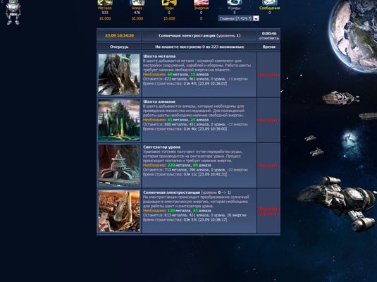 Что можно делать в игре кроме как развития планеты и постройки армии!? Ну конечно же укреплять и улучшать оборону планет и баз. Возможность постройки как военного флота так и кораблей разведчиков способных патрулировать космическое пространство и вовремя узнавать о готовящемся нападении и замыслах врага. Есть прикольная фишка как “радио” можно заказывать разную музыку на заказ. Попробовать поиграть точно стоит! По голове в игре не бьют (я проверял), но с радостью уничтожат вас!