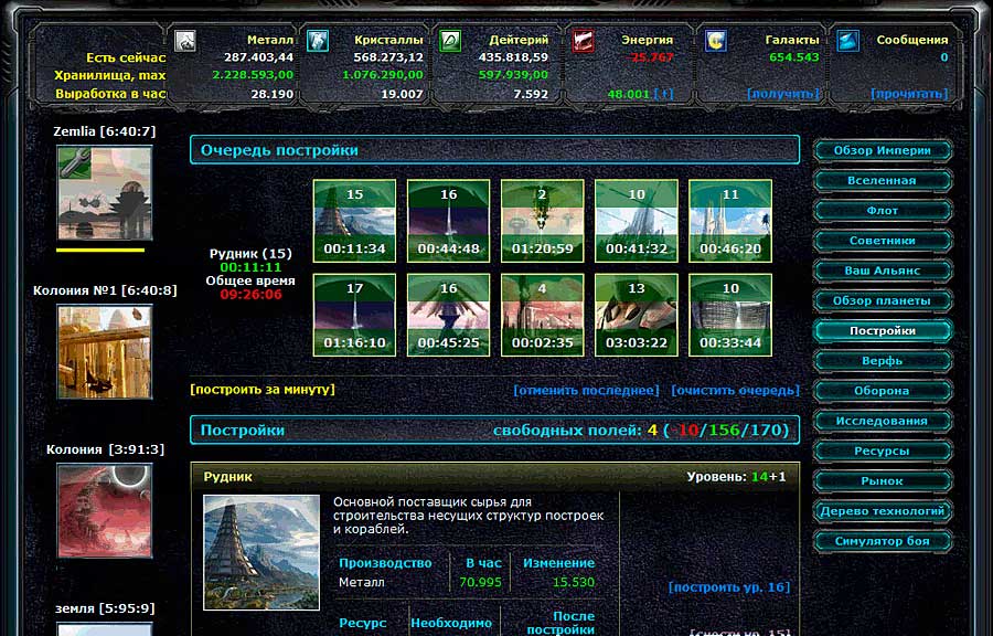 Игра хороша тем, что в ней всё очень красочно прорисовано. Каждое здание, войска, каждый юнит в отдельности и планеты. Графическая состовляющая действительно радует в игре. Можете сами посмотреть скриншоты из игры. Создайте экономическую и военную инфраструктуру для будущего развития новейших технологий. Ведите войны против других империй, ведь только в бою Вы сможете одержать победу в войне за ресурсы.