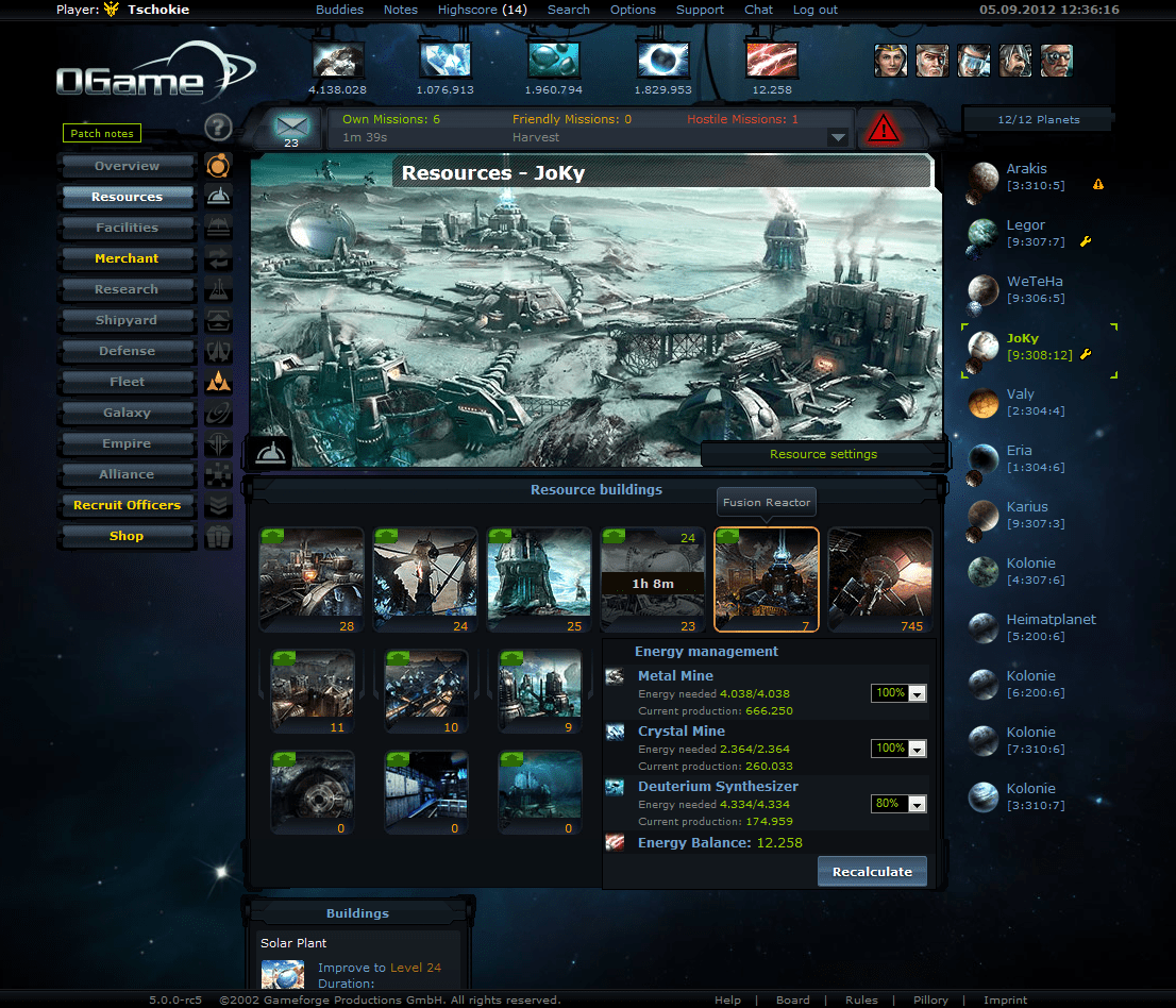 OGame – браузерная космическая стратегия которая позволит вам стать межгалактическим завоевателем. В игре всё как обычно по сценарию. Вам дают маленькую захудалую планетку и начальный уровень ресурсов. И с помощью этого вы должны создать могучую империю с множеством войск, которая сможет разорвать любого в клочья посягнувшего на ваши владения. И время от времени напоминать своим соседям что вы есть и вы у них как заноза где-то и с вами нужно считаться.
