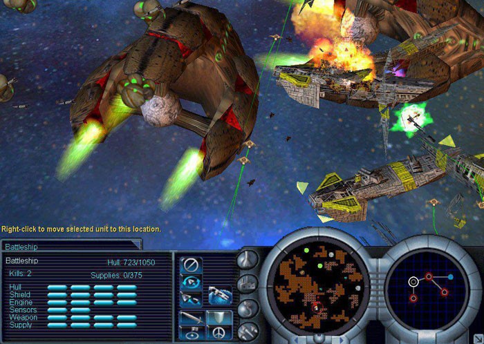 Homeworld это можно сказать целый симулятор управления боевым космическим флотом. Большой набор космических кораблей – начиная от эскадрилий мелких истребителей и корветов до гигантских эсминцев и, линкоров Большой выбор тактических решений и распорядка боевых порядков перед атакой и защитой. Реализация шести степеней свободы передвижения игровых объектов – вы можете осматривать флот или боевую единицу с любой точки поворачивая камеру так, как вам удобно.