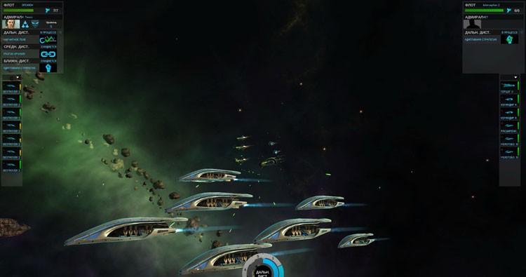 Игрок определяет боевой порядок кораблей и По мере попадания орудий, «узор» шкалы изменяется. Изучение исследований которые позволяют улучшить экипировку и защиту кораблей. Возможность нанимать адмиралов для управления флотом, если адмирал умирает то флот становится небоеспособным. Игроку также следует следить за энергоснабжением и потреблением кораблей. Слишком энергоёмкие системы или орудия попросту не смогут эффективно работать без необходимого количества энергии. Это более всего касается энергетического оружия.