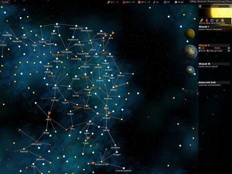Игра включает в себя экономическую, научную, военную и дипломатическую составляющие. Можно выбрать одну из рас населяющих космос и играть за неё каждая расса обладает своими особенностями, слабостями и возможностями. В игре есть интересная особенность это управление строительством флота. Мы создаём проект корабля и загружаем его в строительную верфь. Можно позволить игре создать дизайн вашего корабля или же самостоятельно, балансируя между мощью, скорострельностью и дальностью, выбирая необходимые именно вам параметры корабля.