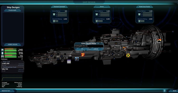 Особенностью игры является широкий выбор кастомизации кораблей (можно создать свой уникальный дизайн для каждого из кораблей вашего флота). Благодаря детальной системе кастомизации звездолетов, есть возможность установки определенных модулей в разных частях корпуса, что напрямую влияет на доступные тактические маневры в бою. Во время сражения учитывается броня каждого отдельно взятого борта корабля, более мелкие суда могут прятаться в защитных полях материнского корабля, а правильное использование прыжковых двигателей поможет наносить молниеносные атаки и вовремя уводить флотилии от вражеского огня.