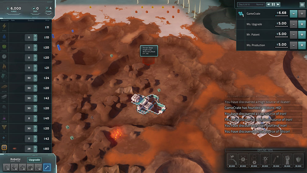 Экономическая стратегия в Sci-fi сетинге. Сюжет игры замешан на противостоянии могущественных корпораций, которые колонизировали Марс для добычи ценных ресурсов. Игрок сможет взять одну из баз под свой контроль, добиться максимальной прибыли и вытеснить конкурирующие фирмы с планеты.