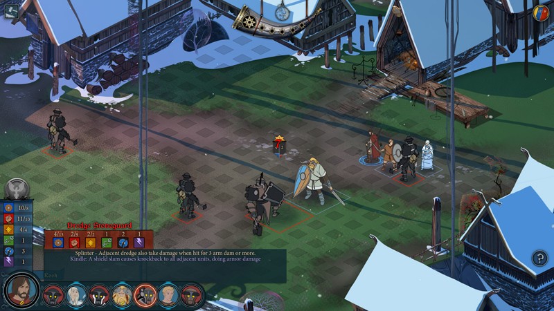 Боевая механика — клеточное поле, три параметра (сила, определяющая здоровье и урон; броня, поглощающая часть повреждений; боевой дух, расходуемый на особые умения и действия «сверх положенного»), знакомые классы воинов (есть новички вроде атакующего через клетку копейщика или охотника, сочетающего навыки стрелка и рукопашного бойца) и глубокая, требующая вдумчивого подхода тактическая составляющая игры.