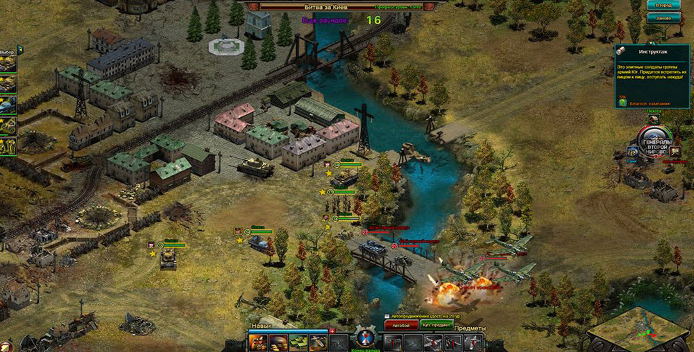 Генералы Второй Мировой – наиболее сейчас популярная онлайн игра в сети на тему второй мировой войны. Игра представляет из себя, экономическую и пошаговую стратегию. Можно выбрать одну из сторон за которую вы будете воевать (Красная Армия, Вермахт и Союзники) в соответствии с этим игровой сюжет игры меняется в зависимости от того, за кого вы воюете, так как игра старается следовать историческим событиям, которые мы можем изменить одержав победу.