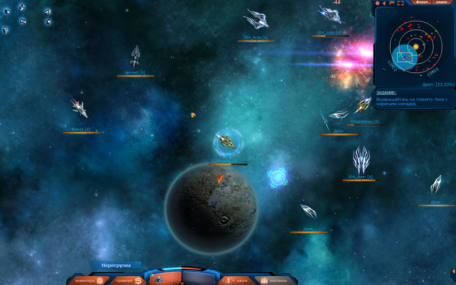 DarkOrbit – браузерная массовая игра с миллионом игроков по всему миру, которая постоянно развивается и улучшается. По сюжету игры мы окажемся в третьем тысячелетии и сможем управлять своим кораблём (в игре вы можете покупать несколько классов и типов космических кораблей). Динамические космические бои, межфракционные войны, прокачка и апгрейд кораблей.