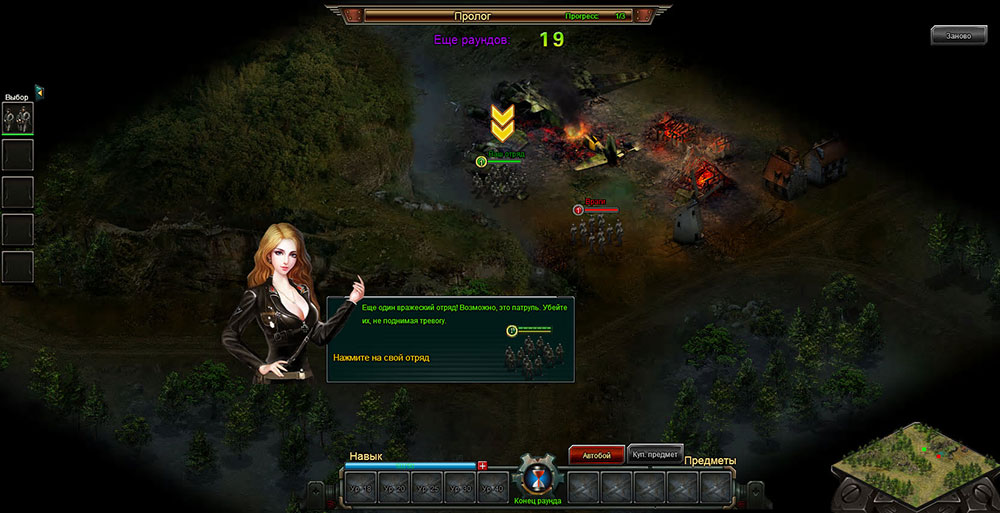 После высадки отрядов игрок уже никак не влияет на их ход, но перед этим может выбрать куда их высадить и соответственно рассчитать куда они пойдут, также высаживать первыми те отряды которые лучше справятся с противником. К примеру, высаживаем отряд пехоты и под его прикрытием отправляем отряд пулемётчиков. Также своих бойцов можно лечить применять авиаудары по большому скоплению противников и прочее.