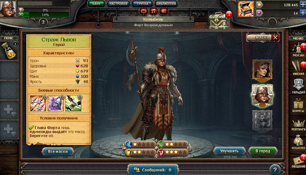 Проект представляет собой классическую браузерную MMORPG, в которой главной целью игры, является прокачка героя. Игрок сможет выполнять различные квесты и получать за них опыт, исследуя новые заклинания и повышая характеристики. Главным отличием игры стала система масок и образов. Персонаж сможет получать особые предметы, которые не только изменяют облик героя, но и дают ему сильные улучшения. Время для Героя сможет порадовать всех любителей фэнтезийных ролевых игр с красивой рисованной графикой, PvP ареной и большим набором предметов.