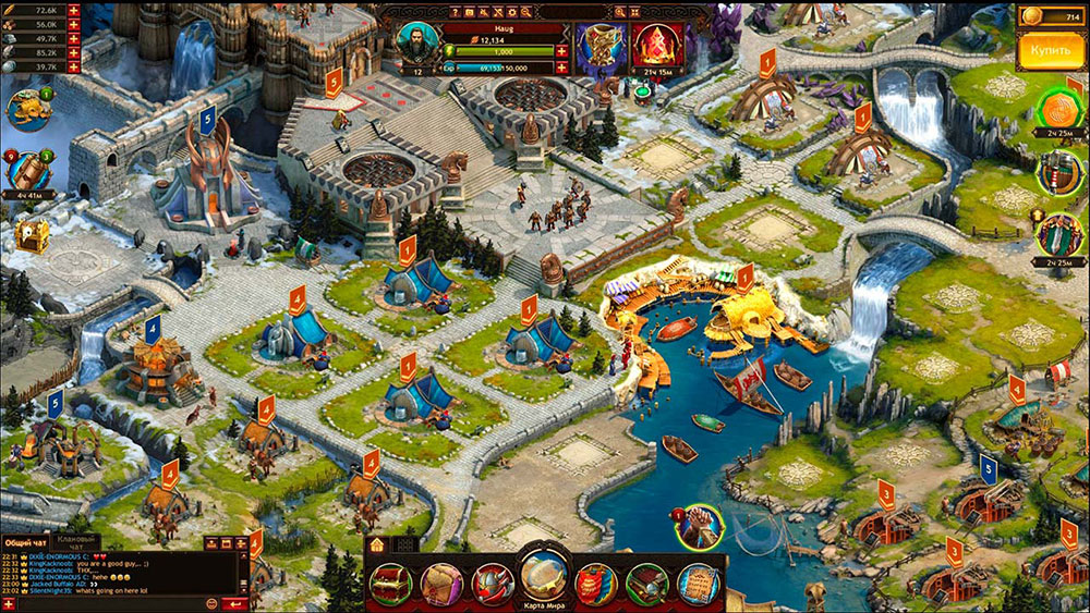 В процессе игры, геймер должен удачно распределить силы и ресурсы своих подданных, чтобы обеспечить максимально быстрое развитие. Первым делом стоит позаботиться об добыче нужных материалов. Основные ресурсы – еда, металл, древесина, камень, серебро. Для этого можно отправить рабочих на рудники или в леса. Затем нужно позаботиться об армии и защите. Для этого, нужно тренировать солдат и прокачивать героя. После создания войска, можно начинать захватывать более слабых врагов и нападать на других игроков. Также в игре присутствует дипломатия. Кланы могут объединятся и создавать военные Альянсы. Проект понравится всем любителям многопользовательских стратегий в средневековом сетинге.